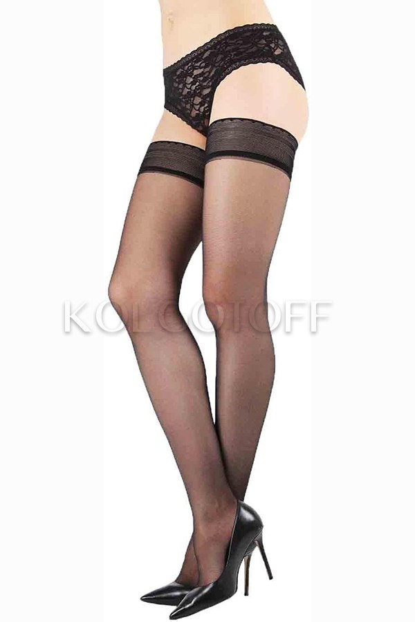 Тонкие шелковистые самоподдерживающиеся чулки с изящной ажурной резинкой на силиконе. Благодаря использованию Lycra двойного кручения, очень мягкие и эластичные. Усиленные мыски.
