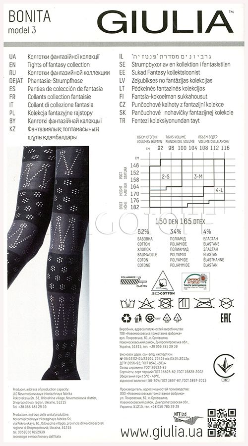 Плотные двухцветные тёплые колготки с большим содержанием хлопка и просветным узором по всей ноге. Комфортный широкий пояс, плоские швы, хлопковая ластовица и уплотнённые мыски.