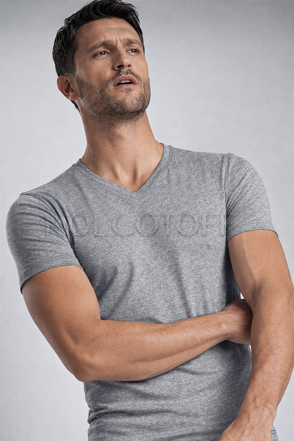 Мужская однотонная футболка классического кроя, с короткими рукавами и V-образным вырезом. С добавлением эластана для большей прочности и эластичности. На рукаве надпись "IL GRANCHIO", имеет боковой шов.