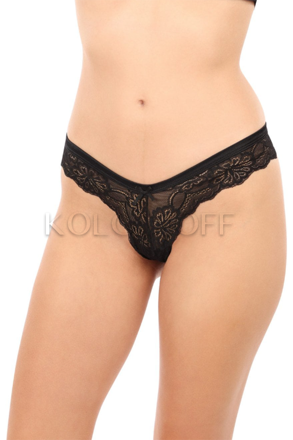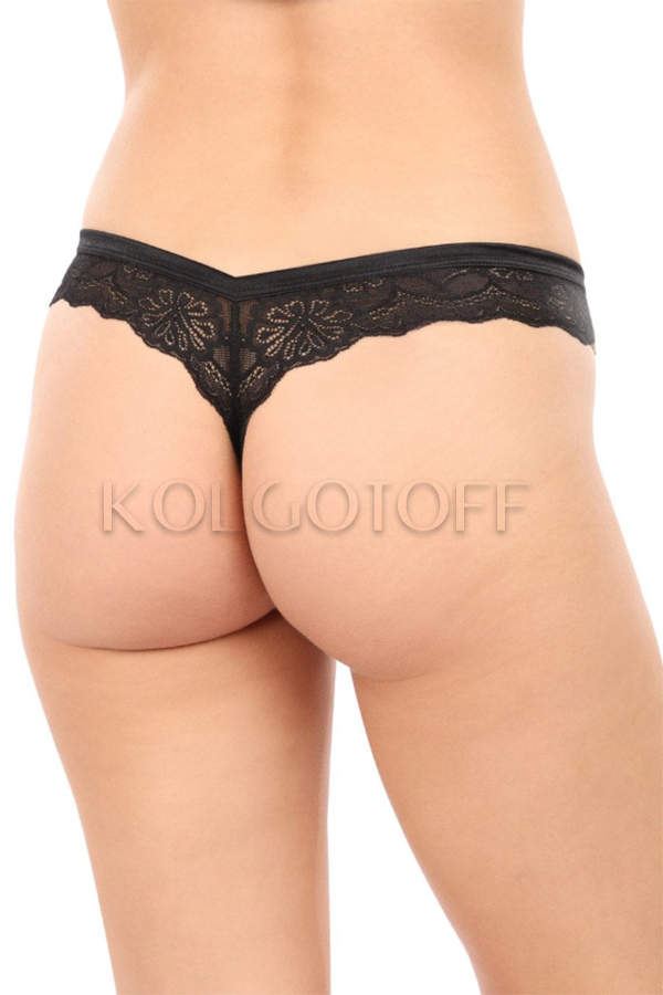 Кружевные трусики-стринг из серии MICROFIBRA, с боковой частью средней ширины и заниженной талией. Спереди украшены бантиком, отделка пояса атласной тесьмой, хлопковая ластовица.