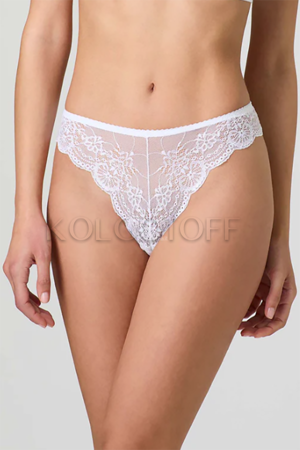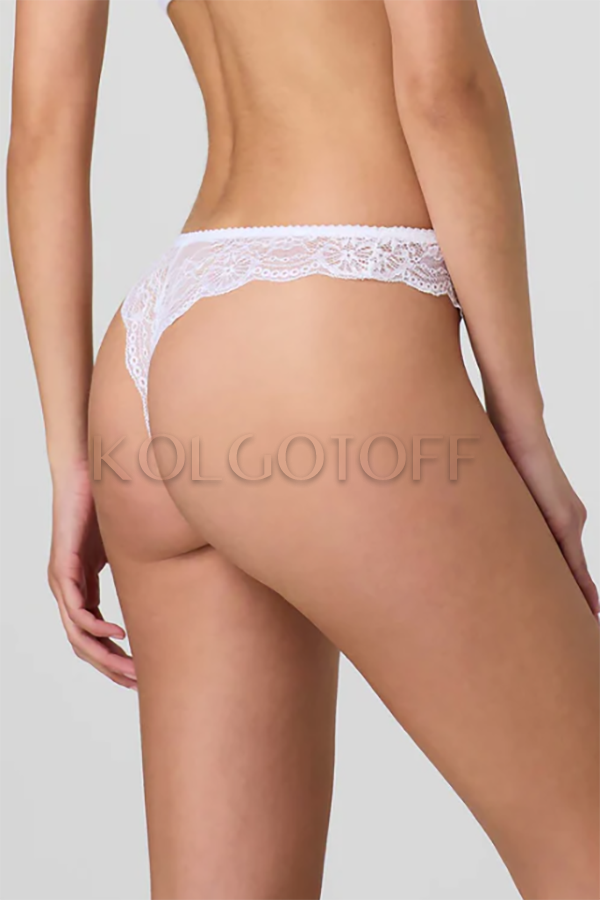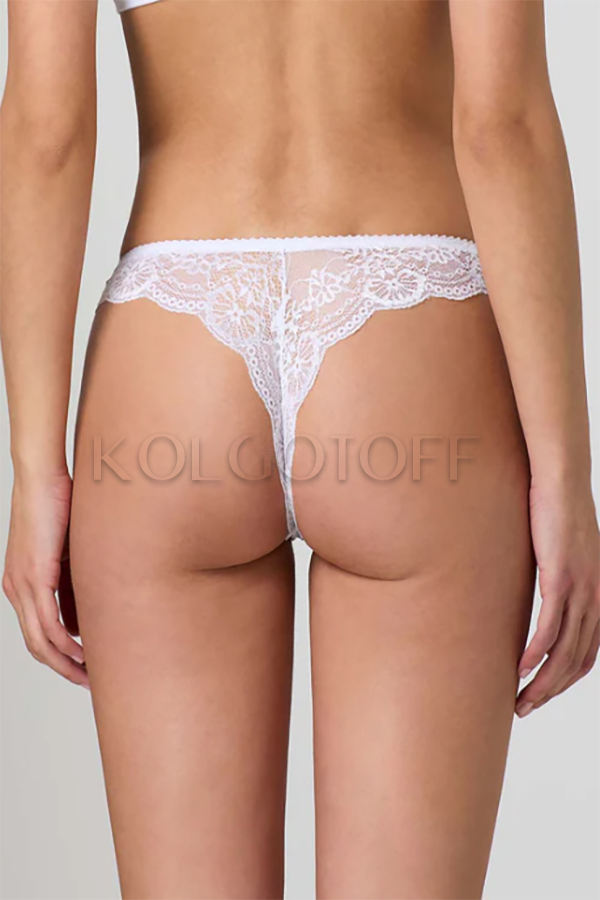 Трусики-стринг из деликатного кружева. Задняя часть - кружевная, со швом посередине, хлопковая ластовица.