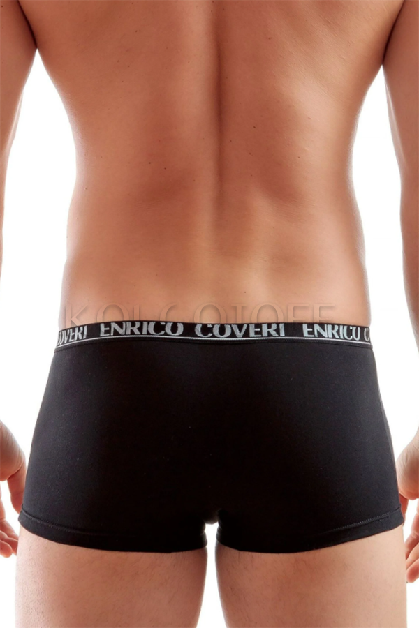 Удобные мужские облегающие трусы-шорты укороченной длины из хлопка и эластана. Эластичный пояс с надписью ENRICO COVERI, анатомический рельефный крой.