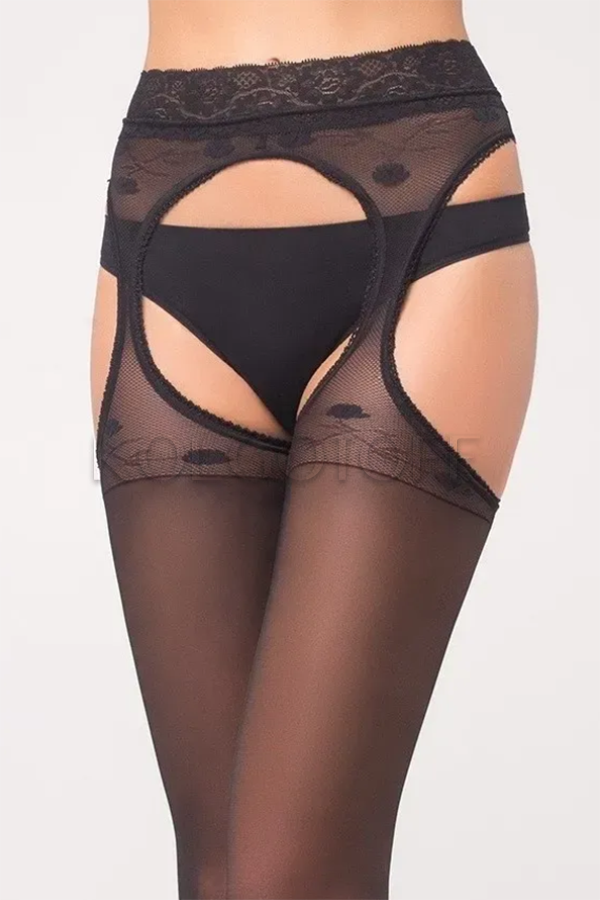 Шовковисті матові колготки щільністю 20 Den - типу Strip Panty -імітація панчіх з поясом. Пояс виконаний з м'якого мережива з елегантною квіткової вишивкою. Невидимі миски.