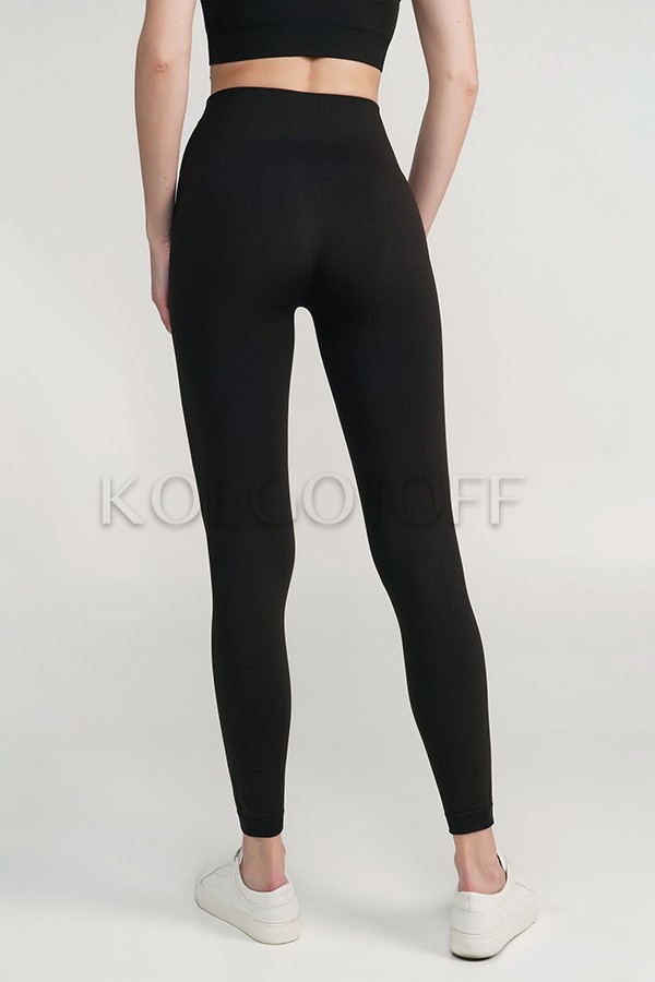 Легінси з високою посадкою з м'якої щільної мікрофібри. Легінси з широкою цільов'язаною гумкою на талії шириною 11,5 см, яка забезпечує помірний підтягуючий ефект в області талії. Легінси виконані за сучасною безшовною технологією без середнього та бічних швів, єдиний шов сточування розташований на внутрішній поверхні ніг. Штанини закінчуються цільов'язаними гумками - манжетами шириною 2,5 см. Легінси підходять для повсякденного носіння, для спорту та домашніх образів. Без упаковки.