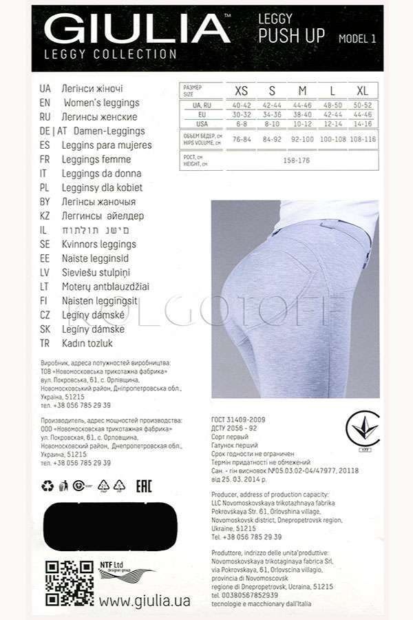 Комфортні легінси з віскози зі спеціальним анатомічним кроєм, що створюють красиву форму сідниць. Спереду імітація кишень і блискавки, пояс на резинці, є отвори для пояса на талії.