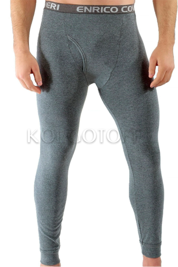 Чоловічі теплі кальсони з 100% бавовни. Плоскі шви, комфортний пояс на гумці з написом "ENRICO COVERI". В області промежини фактурний гульфик для особливого зручності. Внизу на колошах зручні еластичні манжети. Кальсони ідеально підійдуть як натільної білизни в холодну пору року, або замість піжамних брюк.