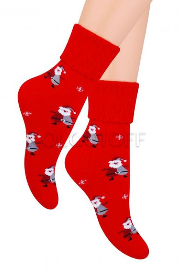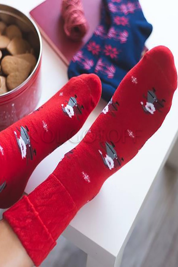 Жіночі махрові шкарпетки з кумедними новорічними мотивами. М'які, теплі, приємні на дотик. Відвертається гумка, анатомічна п'ятка.