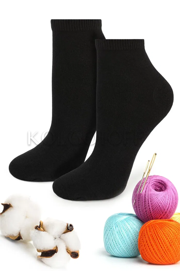 Класичні жіночі шкарпетки. Щільні непрозорі укороченою довжини з бавовни з еластаном. Комфортна неширока гумка в рубчик, анатомічна п'ятка.