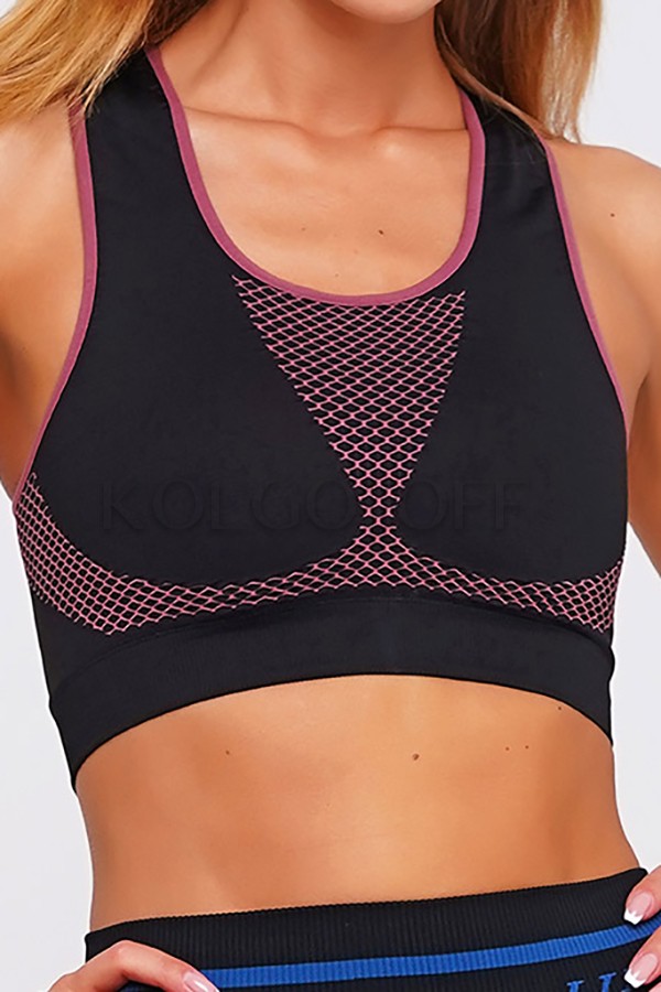 Еластичний двошаровий жіночий спортивний топ з м'якої "дихаючої" мікрофібри з вирізом "борцовка" .Топ максимально відкриває спину і не сковує рухів при виконанні вправ, зручна гумка, широкі бретелі. Два шару надійно закріплені м'якою окантовкою по вирізу горловини і проймах. Окантовка і вставка у вигляді "сот" в області грудей контрастного кольору. Ідеальний для активних занять спортом.