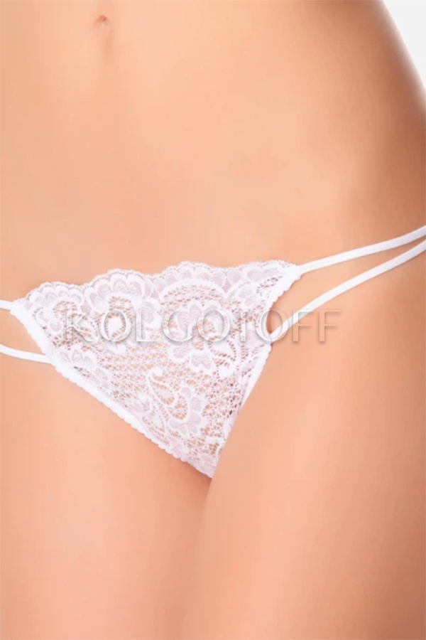 Оригінальні мереживні трусики-стринг з тонкими боками у вигляді двох витончених смужок. Бавовняна ластка.