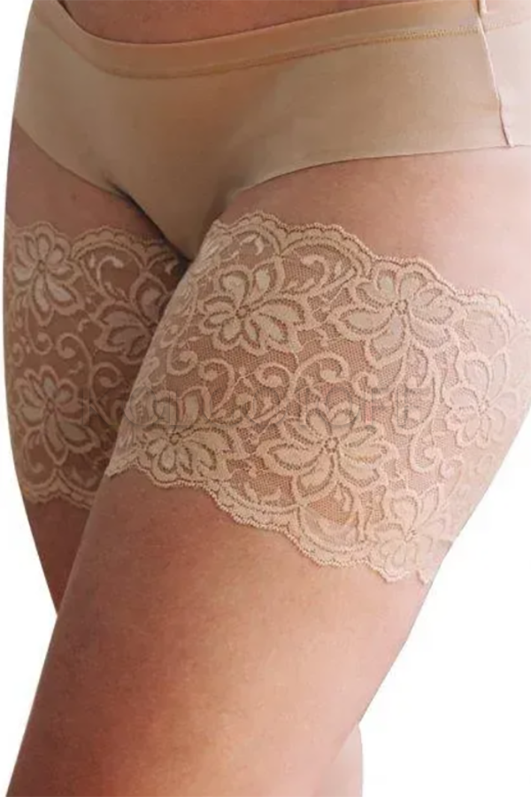 Еластична мереживна стрічка на стегна з подвійною силіконовій смужкою для фіксації. Захищає внутрішню поверхню стегон від натирання. Елегантна і комфортна в носінні. Індивідуальна упаковка.