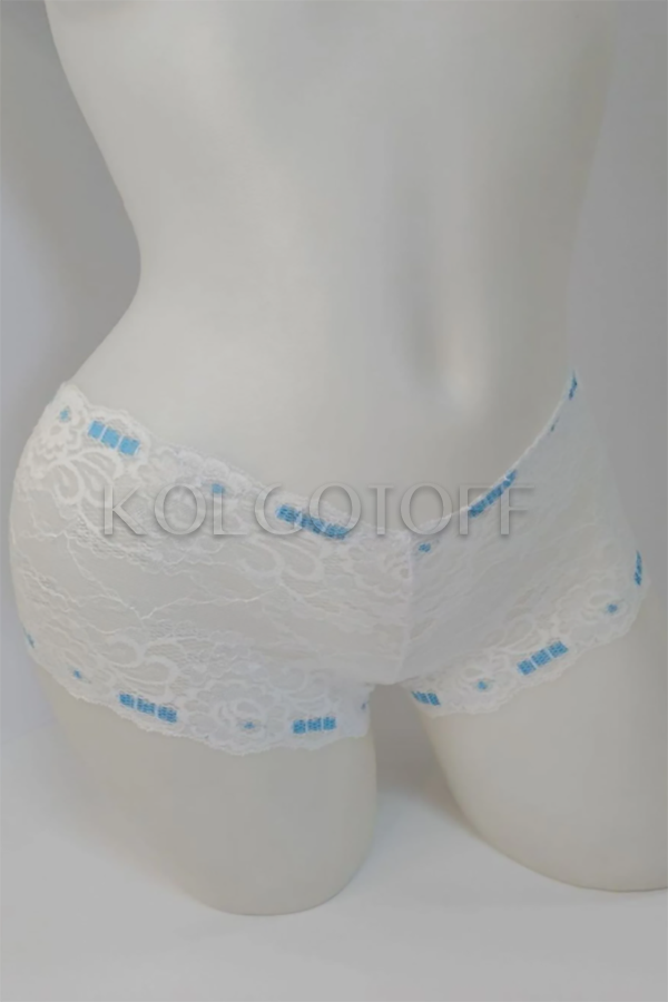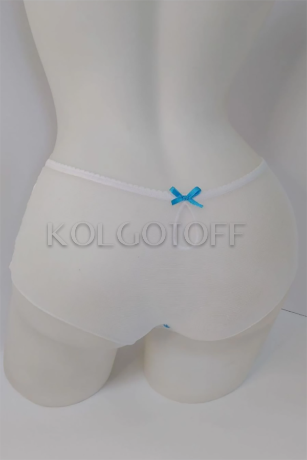 Трусики-шортики з серії MICROFIBRA, передня частина мереживна з декоративними стрічками, задняя- з прозорою мікросеточкі з бантиком і вирізом-краплею.