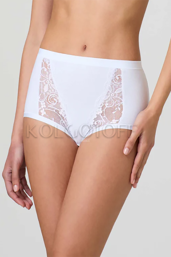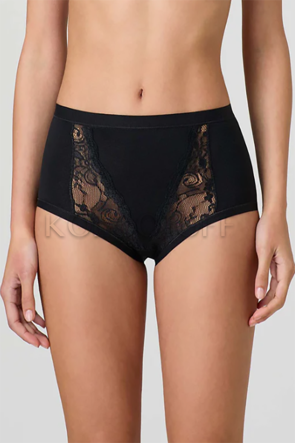 Трусики-сліпи maxi з серії MODAL з високою талією і мереживними вставками з боків. Оздоблення на поясі і по зрізах з м'якої еластичної стрічки, що не передавлює тіло, бавовняна ластка.
