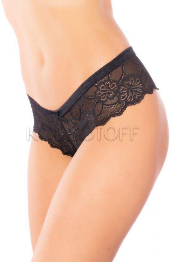 Кружевные трусики-шортики из серии MICROFIBRA, с широкой боковой частью и заниженной талией. Спереди украшены бантиком, отделка пояса атласной тесьмой, хлопковая ластовица.