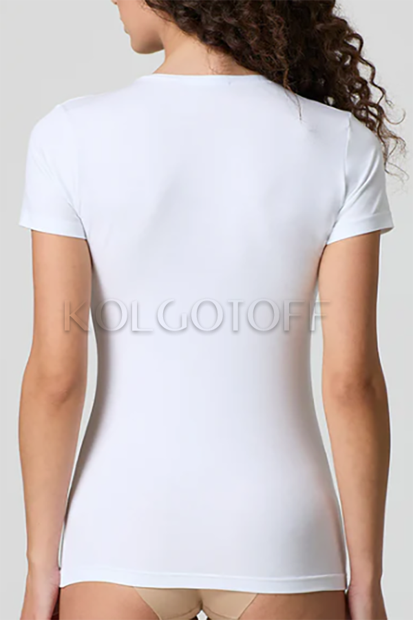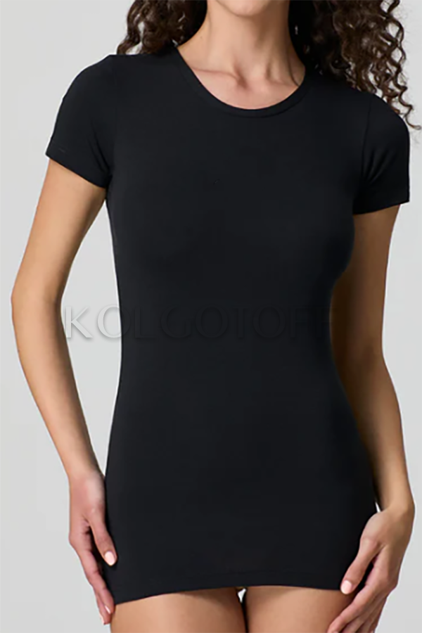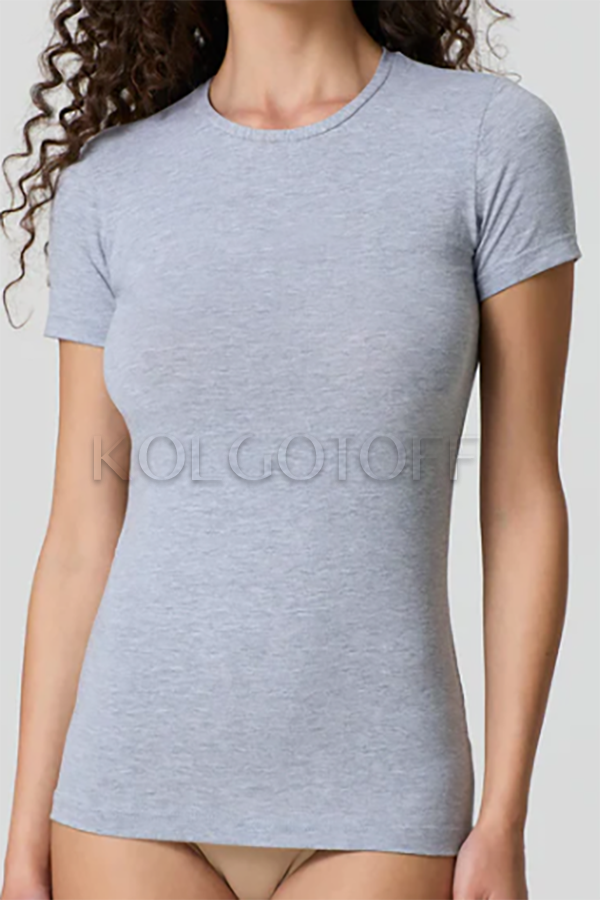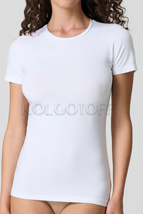 Классическая женская футболка из хлопка и модала с круглым вырезом и коротким рукавом. Однотонная. Облегающего кроя, прекрасно подойдёт как для спорта, так и для повседневного ношения.
